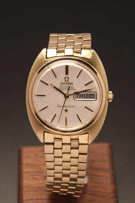 OMEGA CONSTELLATION PIE PAN DOG LEG GOLD AUTOMATIC CHRONOMETER REF. 168.005