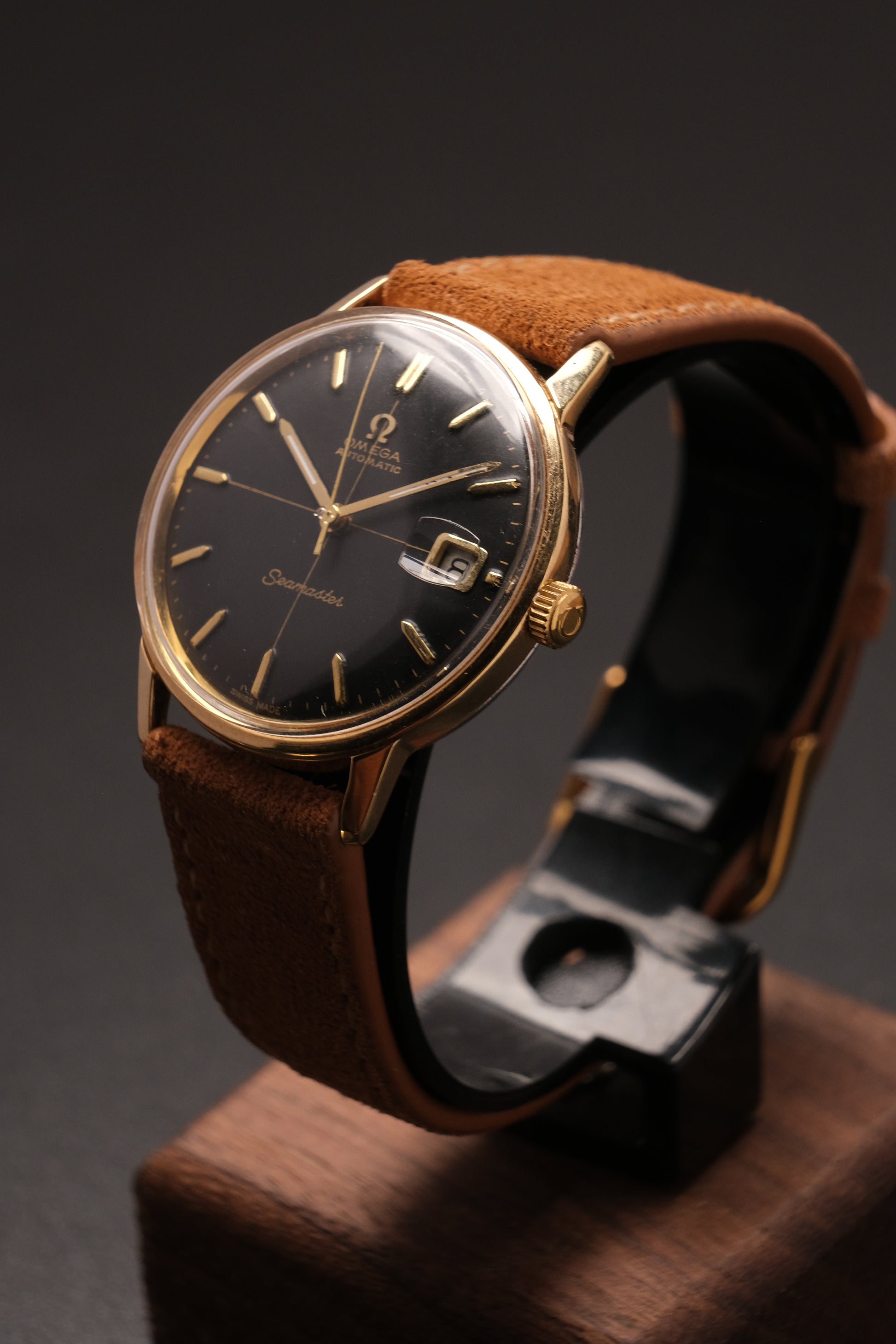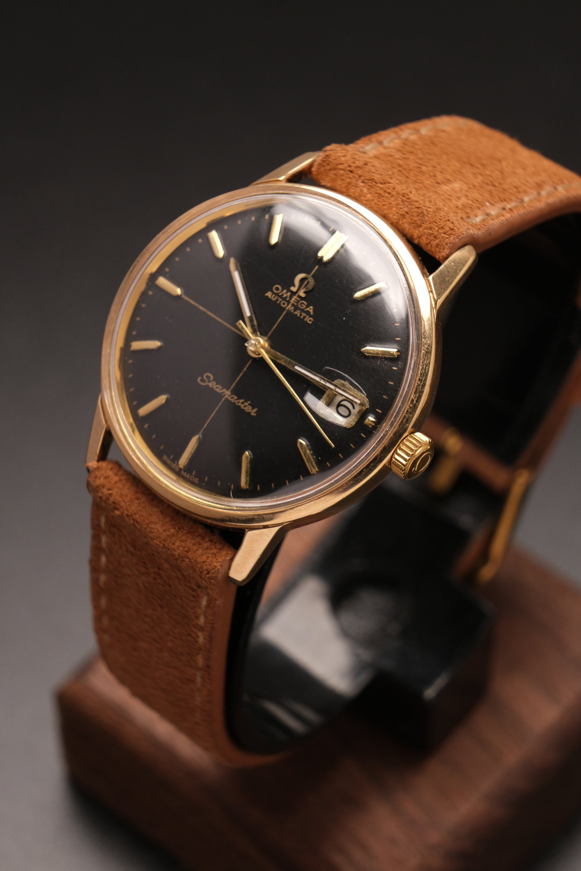 Vintage OMEGA SEAMASTER Black Cross Dial Gold AUTOMATIC 166.002